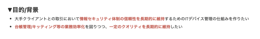 ちなみに、今回の案件においては↓のような目的/背景があってMDM検討が始まった。