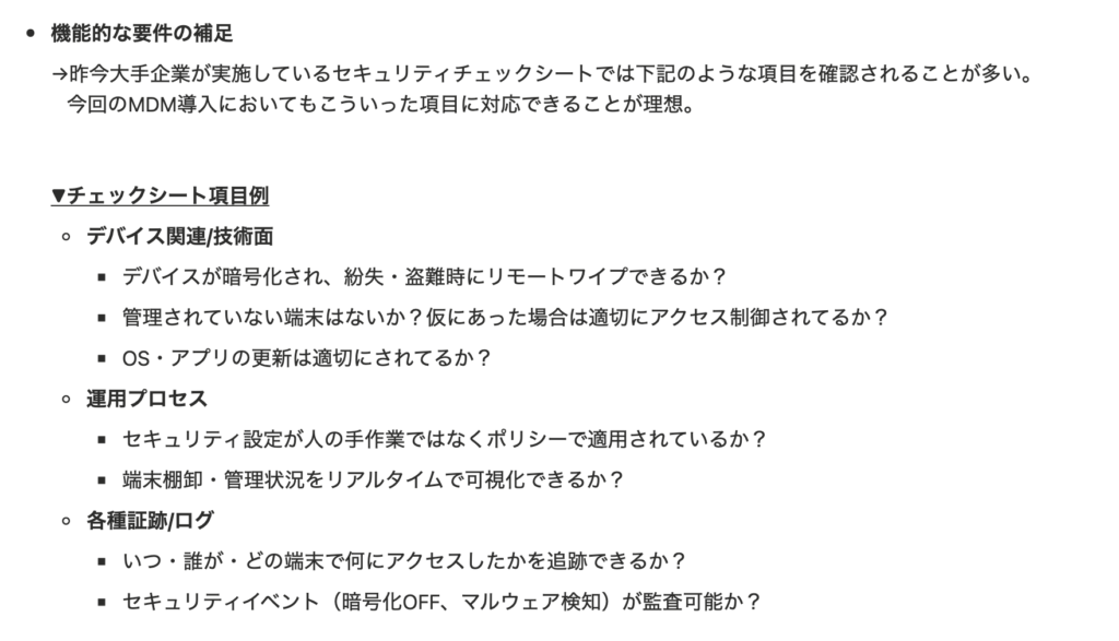 他企業でもMDM導入をしたことがあるが、上記はおそらく最もよく耳にする目的/背景だろう。