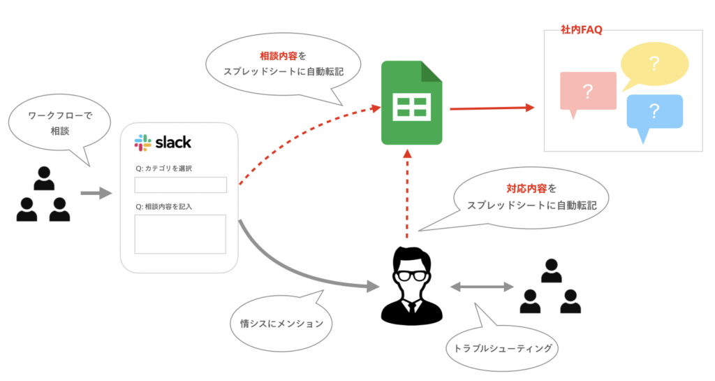 これを例えばSlack上の「#情シス相談チャンネル」のような、相談専用のチャンネルで実装したら