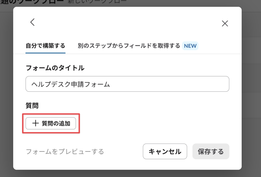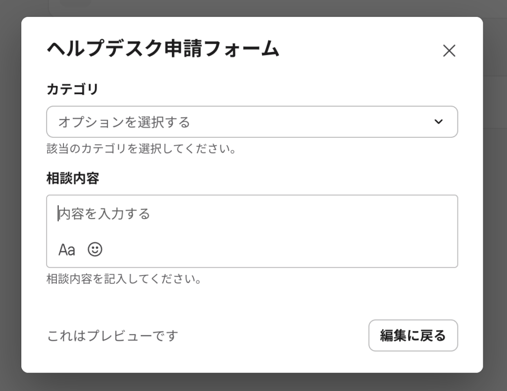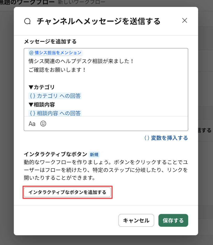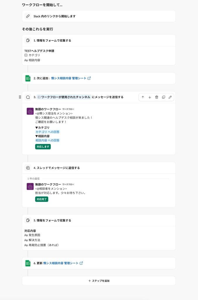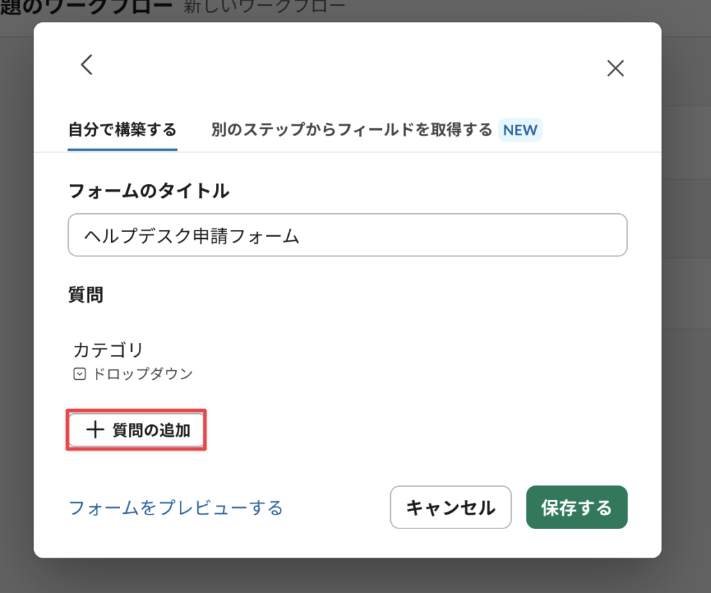 1. Slackワークフローでヘルプデスク内容を収集をするフォームを作成