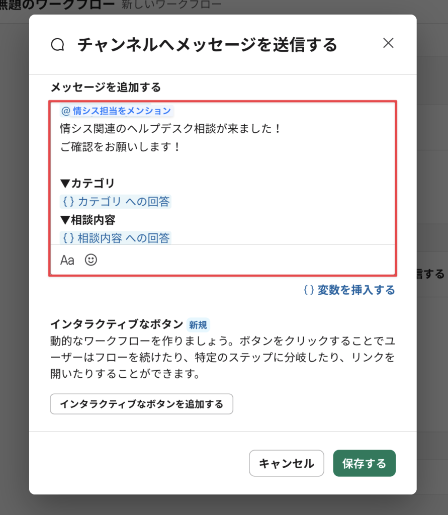 2. 特定のチャンネルに1.の内容を投稿&情シスをメンション